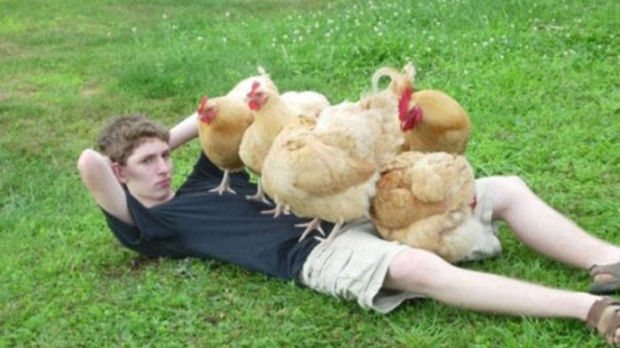 4. Pria ini tampaknya sangat dicintai sekumpulan ayam petelur.