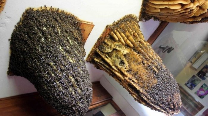 Meski berukuran super besar, sarang lebah itu tak tergolong berbahaya karena diletakkan dalam tabung kacang.