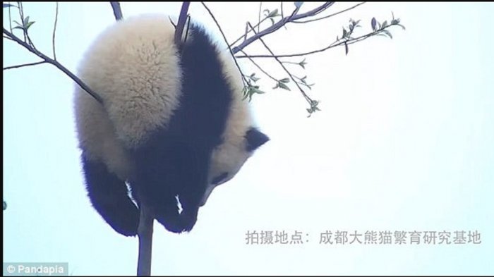 Dalam video tersebut, terlihat seekor anak panda 'nyangkut' di atas pohon.