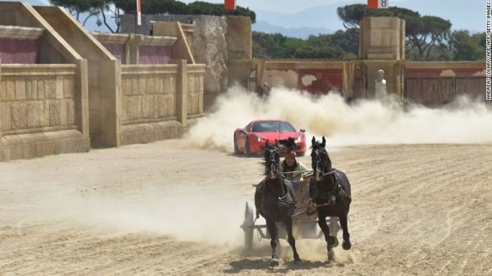 Tapi bagaimana jika Ferrari mencoba balapan melawan kereta kuda di medan berpasir?