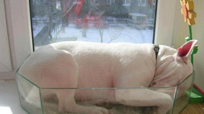4. Posisi tidur nya agar berbahaya sebenarnya, tapi anjing ini seakan tak peduli.