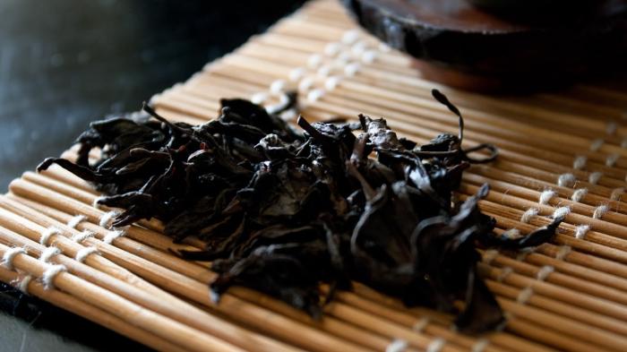 Daun-daun teh itu gelap, kusut, dan belum selesai diolah dari kebun-kebun teh milik keluarganya di Wuyishan.