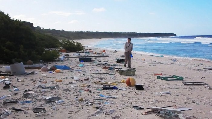 Lebih dari 37 juta potongan sampah plastik, seberat 17 ton terdampar tepian pantainya.