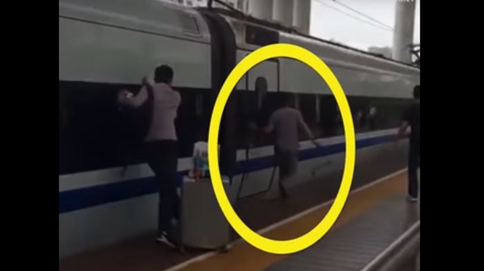 Menurut laporan Shanghaiist.com, tangan pria tersebut bisa ditaqrik sebelum sampai diujung peron.