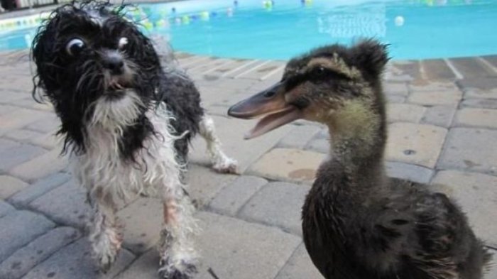 Tapi lucunya, yang membuat binatang sering dianggap sebagai sahabat terbaik manusia ini ketakutan, malah benda-benda yang mengeluarkan suara atau malah hewan yang berukuran lebih kecil.