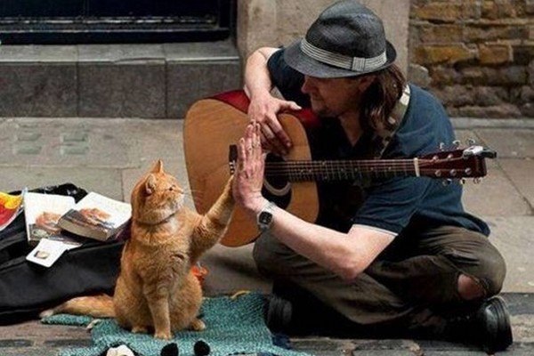 Bob, nama kucing tersebut terus mengikuti kemana pun James pergi.