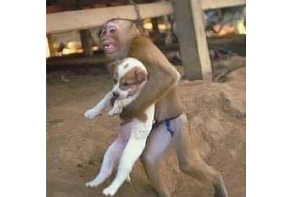 Bukan hanya sekedar membawa, monyet ini ternyata telah menyelamatkan nyawa si anjing.