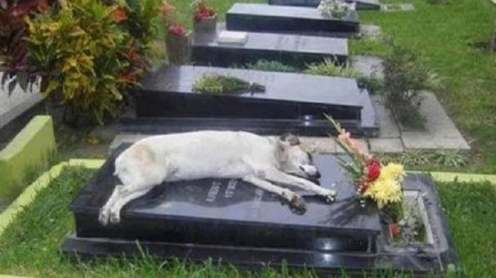 Saking setianya pada sang taun, anjing inibahkan tak pernah meninggalkan tuannya yang telah tiada.