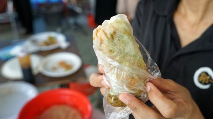 Kemudian, dibungkus dengan kulit yang terbuat dari adonan telur dan tepung terigu.
