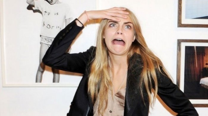 6. Supermodel sekelas Cara Delevingne juga bisa memperlihatkan wajah konyol.