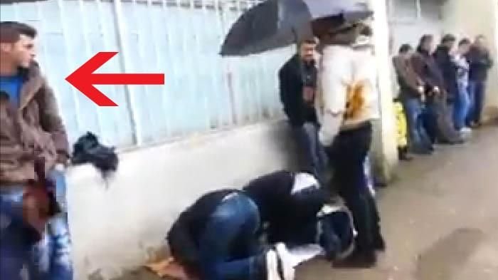 Video ini merekam dua orang pria yang tengah salat di jalanan.