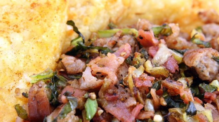 Jagung catemak terbuat dari jagung, labu lilin, dan kacang hijau yang dimasak bersama bumbu-bumbu lainnya hingga matang.