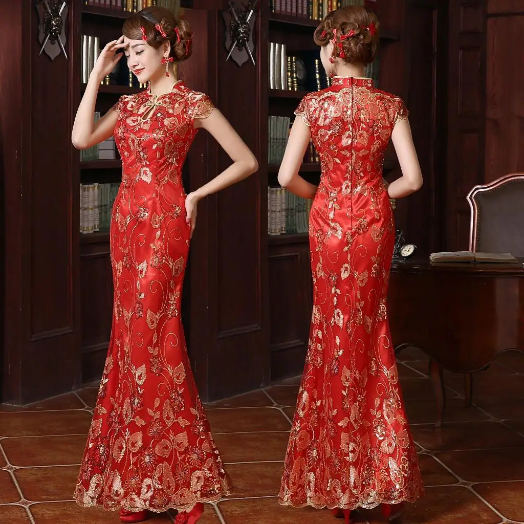 Gaun pengantin tradisional China sering disebut sebagai qipao atau cheongsam.