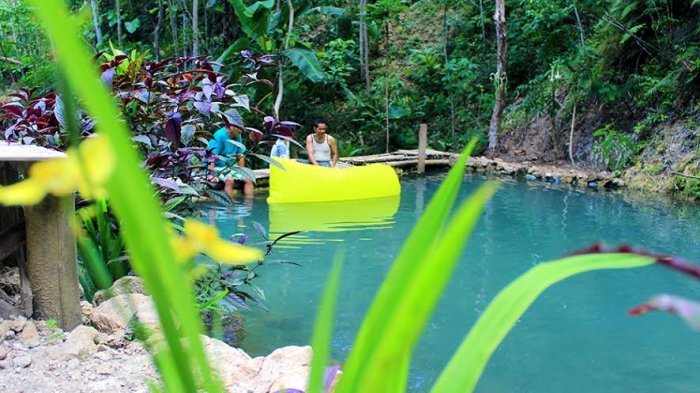 Kolam alami dengan kedalaman kurang lebih 1,5 meter tersebut, airnya berwarna kebiruan, dan alirannya tenang.