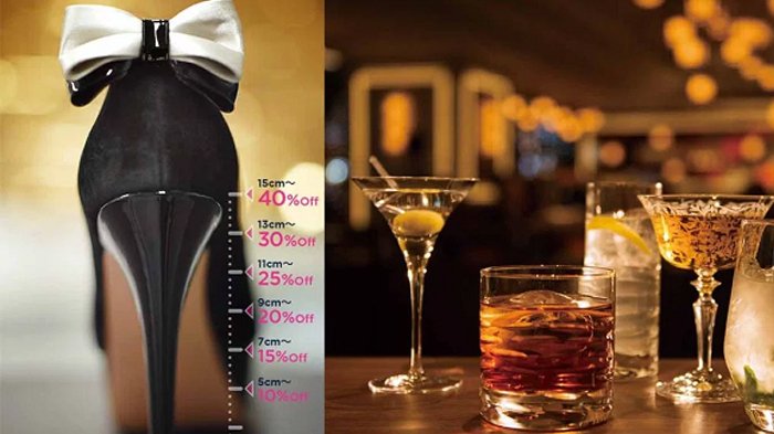Sebuah hotel di Osaka, Jepang memberikan diskon khusus bagi pelanggannya yang mengunjungi cafe atau bar dengan menggunakan sepatu high heels.