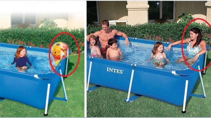 Padahal, pada versi asli iklan yang dibuat oleh Intex Corp, sebuah perusahaan AS yang berbasis di California itu menunjukkan seorang wanita duduk-duduk di tepi kolam.