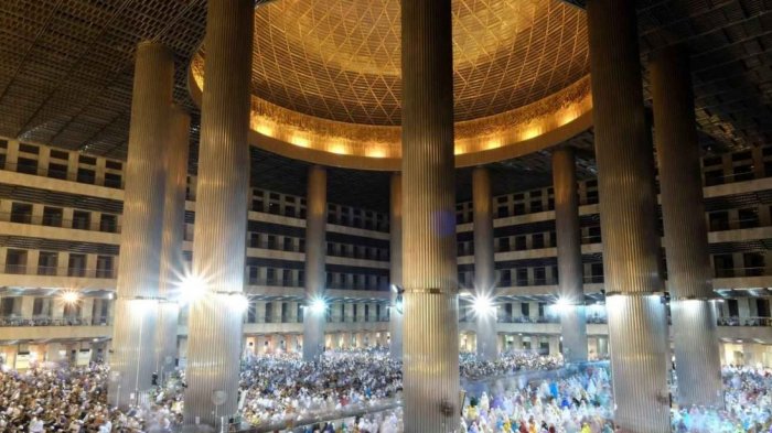 14. Umat muslim tarawih di hari pertama bulan Ramadan di Masjid Istiqlal, Jakarta, Indonesia.