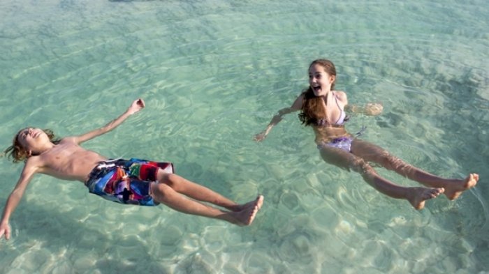 Tingginya kadar garam dalam air laut menjadikan traveler bisa terapung meski tak bisa berenang sekali pun.