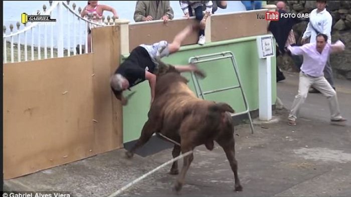 Peristiwa seperti itu terjadi di ajang 'touradas à corda' di Desa Terceiran, Portugis.
