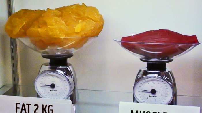 9. Dua kilogram lemak dibandingkan dua kilogram otot.