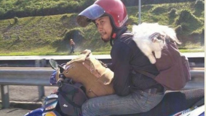 Foto pemuda membonceng kucing itu sempat viral di para pengguna Facebook di Malayia.