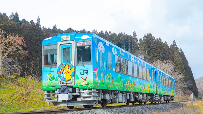 Rencananya kereta Pokemon, berjalan di jalur Ofunato (dari stasiun Ichinoseki ke stasiun Kesennuma, Jepang).