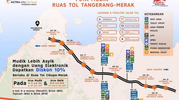 TRIBUNTRAVEL.COM - Tol Tangerang-Merak menjadi satu di antara jalan yang dioperasikan pada musim Lebaran 2017.