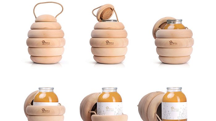 11. Kemasan pembungkus botol madu berbentuk sarang lebah.
