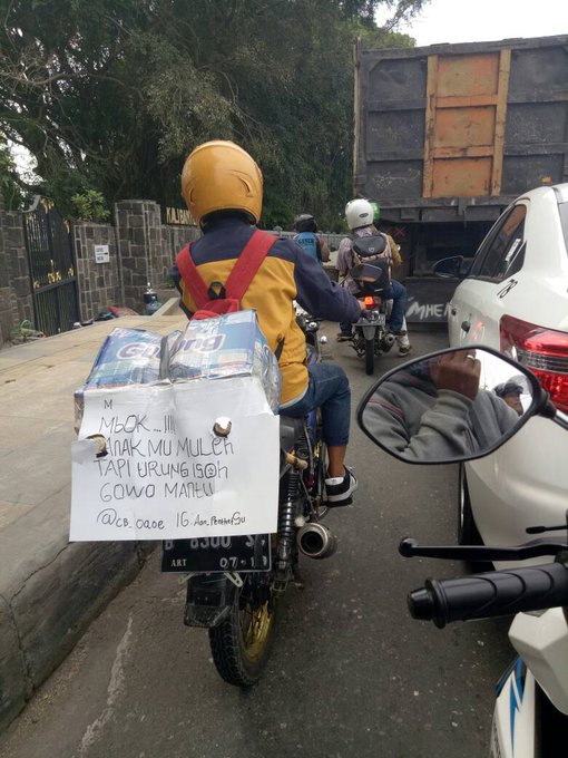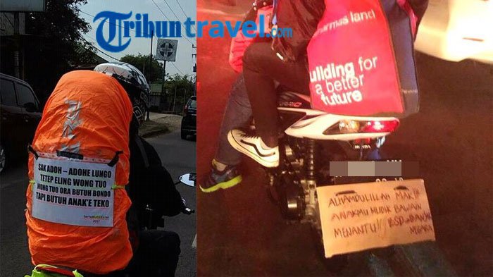 "Alhamdulillah bu, anakmu mudik bawa menantu," tulis pengendara tersebut.