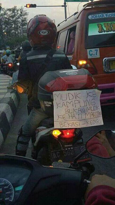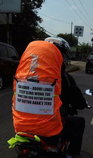 Ternyata para pemudik motor ini tidak hanya mudik belaka tapi juga membawa tulisan-tulisan unik.