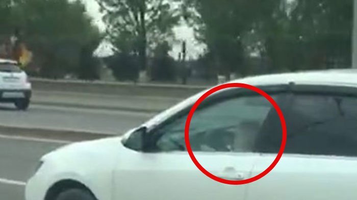 Pengendara tersebut lantas mengambil ponsel, lalu merekam momen di dekat mobil Toyota tersebut.