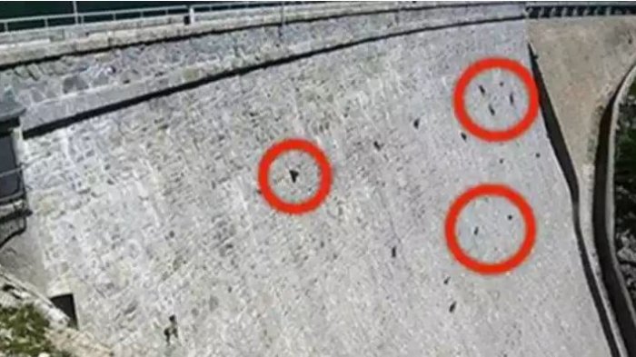 Titik-titik yang menempel di dinding bendungan tampak seperti batu atau bayangan, bukan?