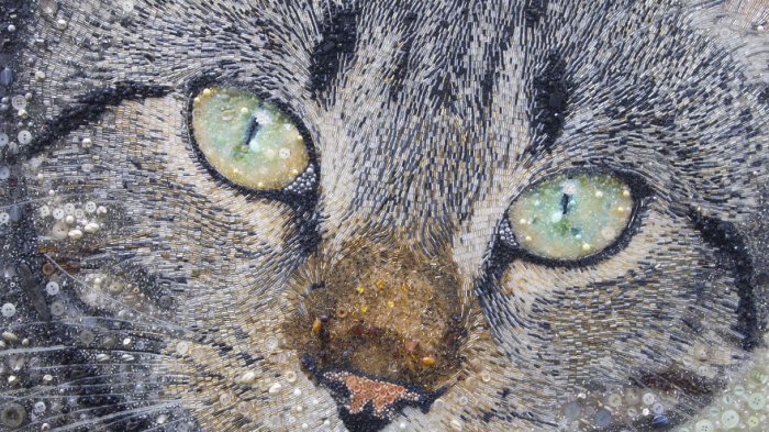 Dilansir dari laman boredpanda.com, bukannya pernak-pernik, Sarah malah berkreasi membuat lukisan yang terbuat dari manik-manik dan kancing baju.