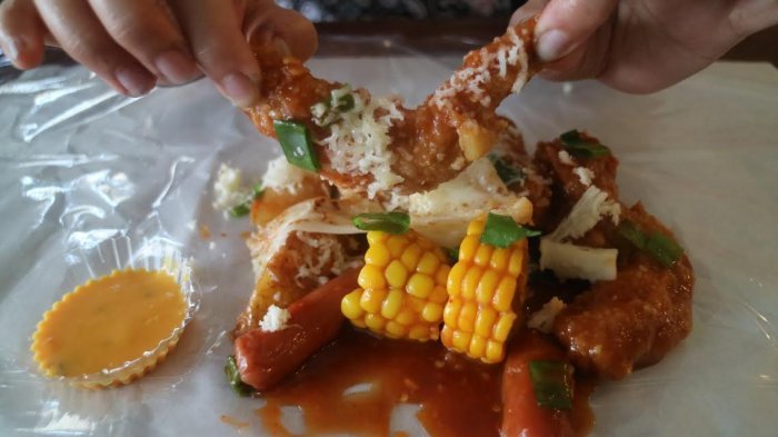 "Cara ini biasa digunakan saat orang makan masakan seafood, dan agar bisa makan beramai-ramai. Biasanya orang yang alergi masakan seafood pada beralih ke ayam yang aman," kata pemilik Warung Jambak, Olivia Ratnasari Sugiharto.