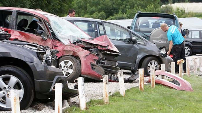 Total ada 22 mobil baru rusak dalam insiden tersebut.