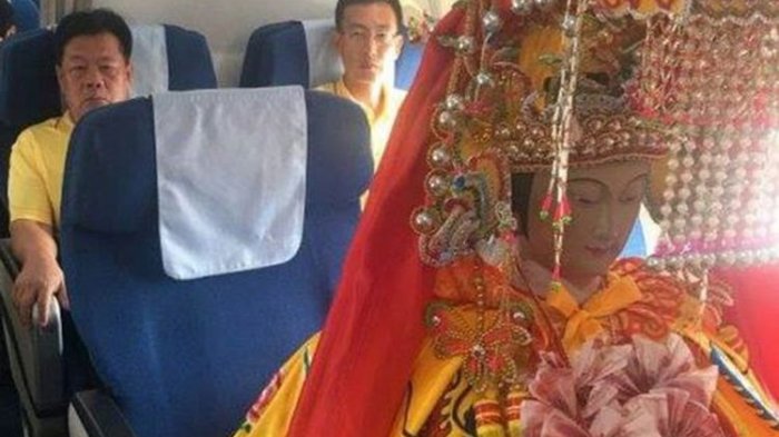 TRIBUNTRAVEL.COM - Foto tentang keberadaan tiga patung dewi China yang ditempatkan di kursi penumpang kelas bisnis dalam penerbangan dari Xiamen, China ke Kuala Lumpur, Malaysia, ramai menjadi perbincangan publik.