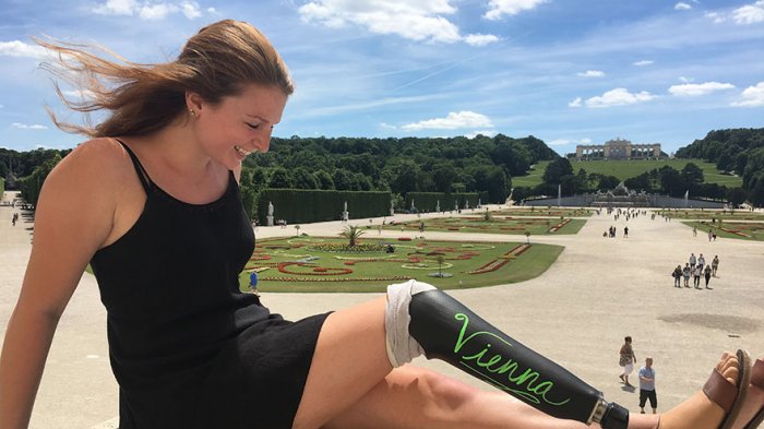 Kecintaannya dengan kegiatan jalan-jalan membawanya untuk berkeliling Eropa dengan kaki palsu uniknya guys.