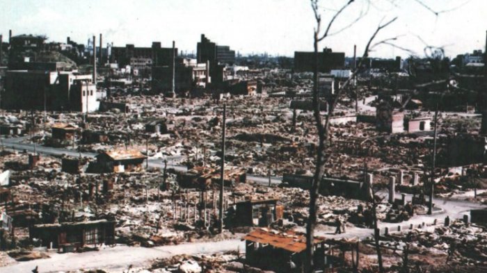 12. Salah satu foto berwarna yang memperlihatkan kerusakan di pusat kota saat musim gugur tahun 1945