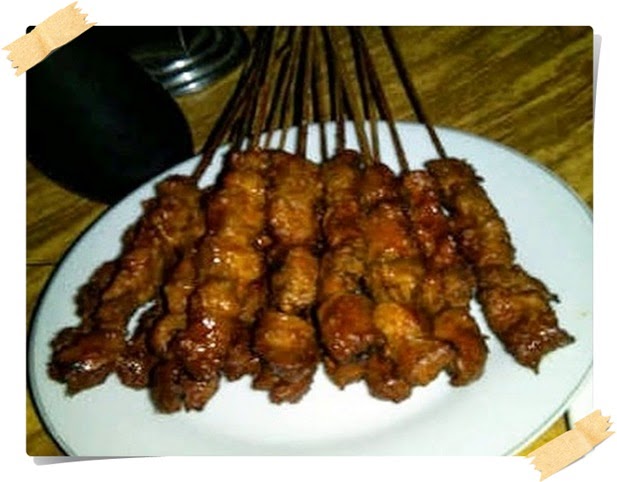 Potongan daging yang dipotong kecil-kecil dan ditusuk dengan batang terbuat dari bambu atau lidi, kemudian dibumbui serta dibakar dengan arang.