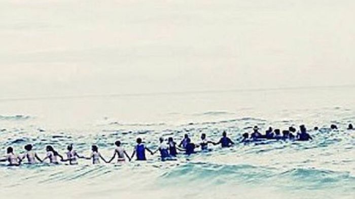 Jaring manusia itu saling berpegangan erat untuk "menjaring anak laki-laki Roberta" dari lokasi tenggelamnya dan secara perlahan terus bergerak menuju pinggir pantai.