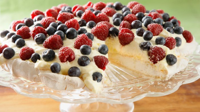Terbuat dari buah kiwi, markisa, dan stroberi - pavlova lebih unggul dari meringue rata-rata karena adanya penambahan tepung jagung.