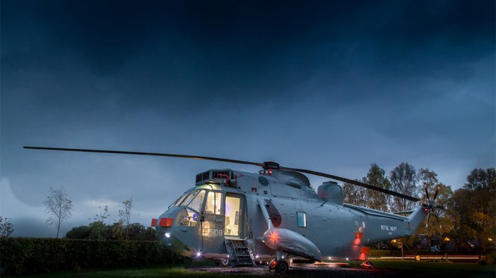 Udah kebayang gimana keseruan menginap di Royal Navy Sea King Helicopter ini?