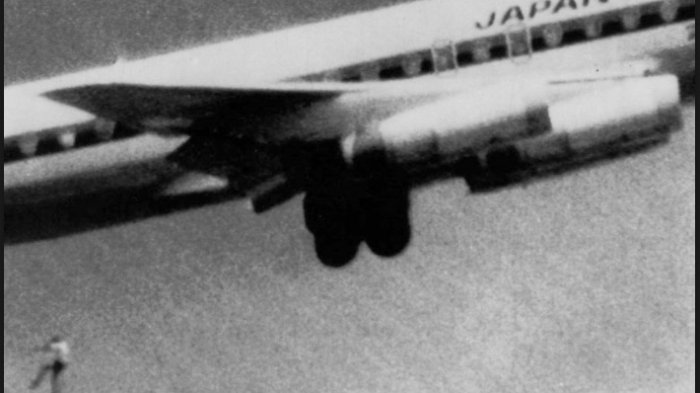 Kejadian ini terjadi pada tahun 1970 ketika sebuah penumpang gelap bernama Keith Sapsford, yang pada waktu itu masih berusia 14 tahun, jatuh dari ketinggian 200 kaki.