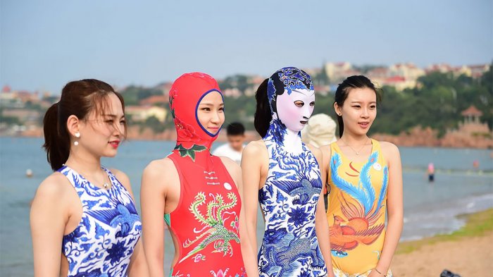 Produk 'Face-Kini' bisa kamu jumpai di Qingdao, toko yang menjual pakaian renang.
