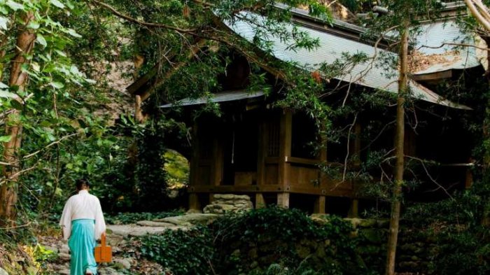 Di Pulau kecil Okinoshima, perempuan dilarang masuk dan pengunjung laki-laki harus mandi telanjang di laut sebelum mengunjungi kuil.