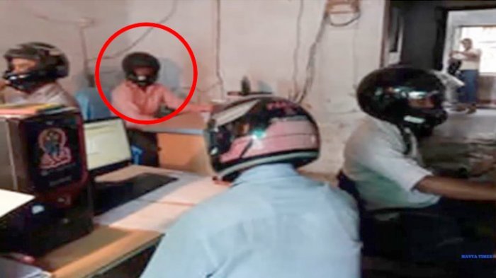 Sebuah kantor pemerintahan di Bihar mengharuskan karyawannya menggunakan helm saat bekerja di dalam gedung.