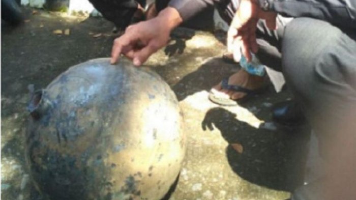 Sidik (30), seorang warga Sungai Batang, mengatakan, logam bulat tersebut tiba-tiba jatuh dengan bunyian yang sangat keras.