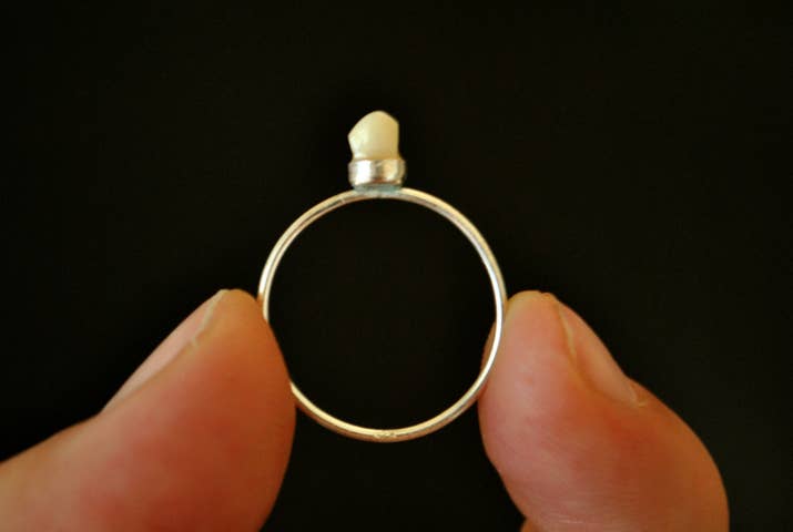 Tapi yang ada di cincin ini adalah potongan gigi asli.
