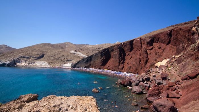 Red Beach mendapatkan namanya dari warna pasir yang mirip warna besi berkarat.