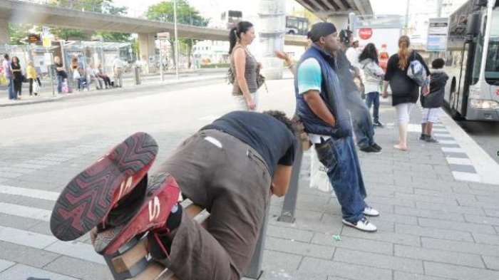 10. Desain bangku ini sengaja dibuat aneh supaya orang tidak duduk terlalu lama